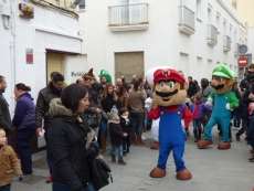 El pasacalle de los personajes de Mario Bros anima la zona centro en una mañana de niebla y frío