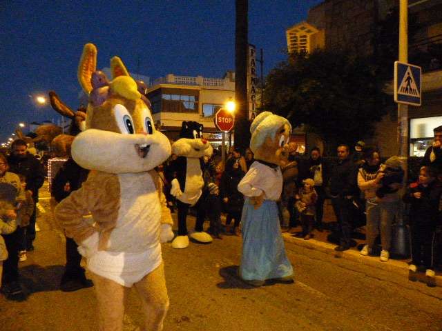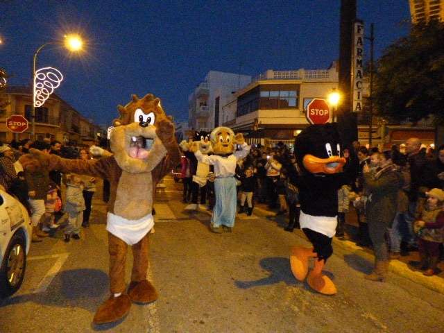 Ayer, personajes como Piolín, el gato Silvestre, Bobs Bunny, el demonio de Tasmania o el pato Lucas bailaron y saludaron a todos aquellos ciudadanos que los siguieron desde su salida del Mercado Central de Abastos hasta la Costilla y vuelta. Algo más de una hora de recorrido que sirvió para que los más pequeños pudieran tomarse fotos con los personajes de dibujos animados que reconocen por las series de televisión, aunque también hubo adultos que se sumaron al ambiente siguiendo con los bailes y coreografías preparadas por los ocho personajes de los Looney Tunes que formaban el pasacalles.