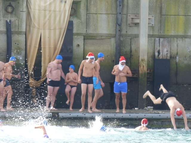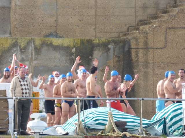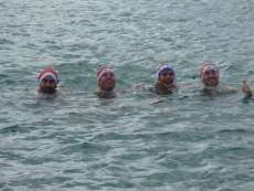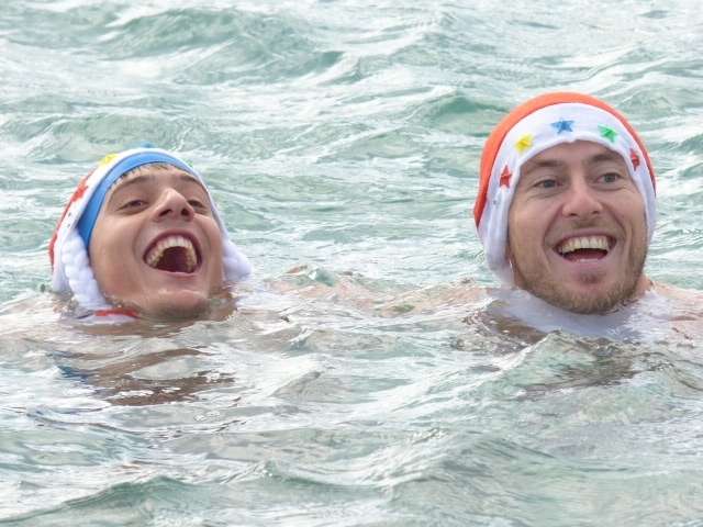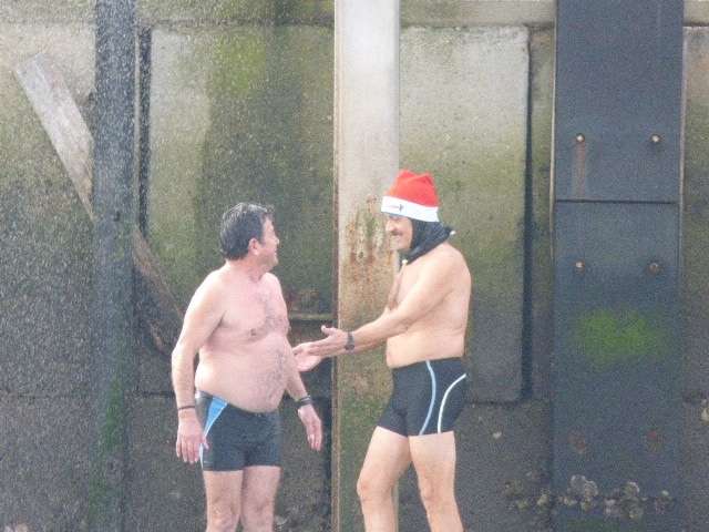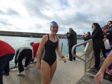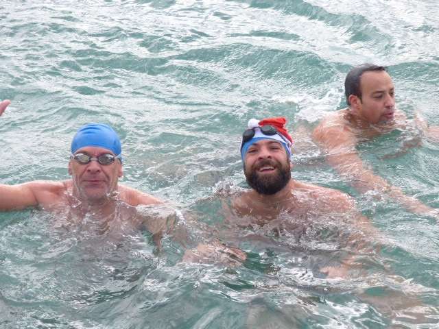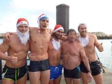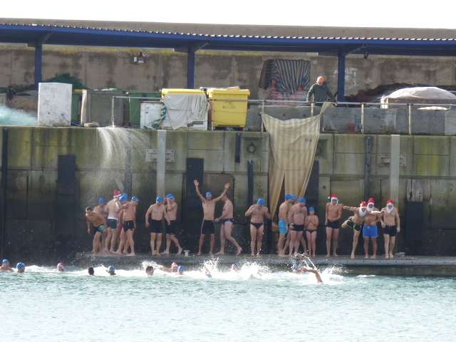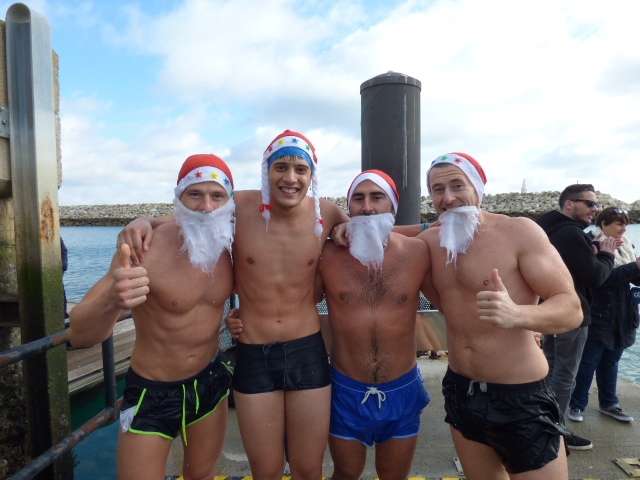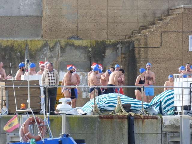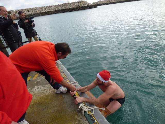 Pasadas las doce del mediodía, y tras la foto de familia de rigor, han ido tirándose al agua los 34 nadadores, algunos muy bien caracterizados con gorro y barbas de Papa Noel incluidos, y la mayoría, ha esperado unos minutos en el agua inmortalizando el momento con cámaras fotográficas y móviles. Efectivos de Cruz Roja han ayudado a los nadadores a subir y han estado presentes por si había algún percance, aunque afortunadamente, no han tenido que actuar.