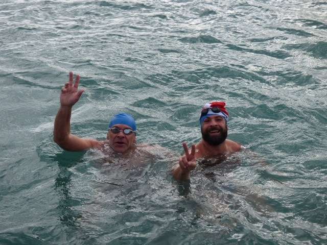 En esta edición, si duda, las temperaturas han sido mucho más agradables que en años anteriores donde en la boca del muelle, era difícil soportar el frío incluso vestido, pero hoy, los nadadores que han participado en la cita, donde está prohibido el traje de neopreno, lo han tenido algo más fácil. Aún así, el agua estaba a unos 13 grados, una temperatura no del todo cómoda para un baño en el mar pero que los 34 participantes han disfrutado, incluso algunos de ellos, se ha regodeado lanzándose un par de veces. Ha sido el caso del propio Pedro Machuca, este roteño que fiel a su cita de bañarse cada día en invierno, hace ocho años pensó en hacer una quedada con amigos que poco a poco, ha ido derivando en una actividad deportiva ya fija en el calendario.