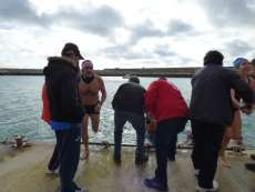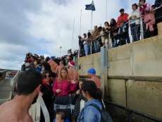 Aunque este año ha habido algo menos de participación, el espíritu se ha mantenido intacto y el buen ambiente ha primado ante todo. De hecho, lo más importante no es ganar o hacer en menor tiempo los 200 metros de recorrido de un lado del muelle pesquero a otro, lo realmente atractivo, es difrutar con amigos de esta locura que comparten muchos roteños de lanzarse en pleno invierno al mar.