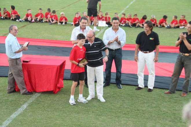 Una vez formado todos los equipos en un semicírculo sobre el terreno de juego, se procedió a la presentación por megafonía de cada uno de los jugadores así como de los distintos técnicos que estarán al frente de estos deportistas. En este acto estuvo presente la junta directiva de la U.D. Roteña con su presidente, Antonio Prados Rebollo, a la cabeza y con la presencia del delegado de Deportes, Manuel Laynez de los Santos.  Fueron éstos, junto a los representantes de Herbalife, patrocinadores este año de las categorías inferiores de este club, los que hicieron entrega de los galardones a los jugadores más regulares de cada categoría durante la temporada pasada.