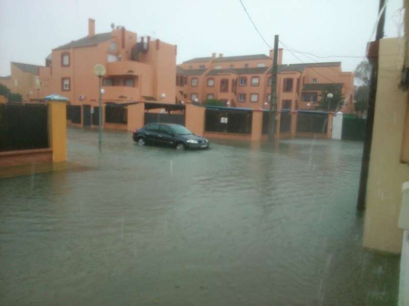 Varias zonas de Rota anegadas por la intensa lluvia mantienen a los servicios municipales en alerta