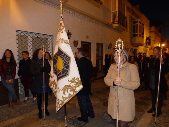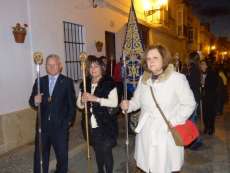 La banda de cornetas y tambores de la Asociación Musical Ruiz-Mateos se encargó de poner los acordes musicales a esta salida procesional que tuvo paradas extraordinaria en la plaza de Andalucía donde la capilla de la Caridad estaba abierta con representantes de las dos hermandades que tienen su sede canónica en ella y un altar engalanado para la ocasión con la imagen de María Auxiliadora.