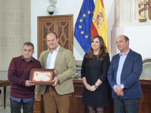 [Img #42090]Por último, José María Puyana García de Quirós, que desde 1994 lleva involucrado en esta fiesta, bien como autor de letras y músicas así como componente de varias agrupaciones, fue el tercero de los homenajeados en este 2015. Pese a su juventud, más de 20 años avalan su trayectoria carnavalera habiendo formado parte de comparsas juveniles y de adultos hasta que en 2002 comienza una nueva etapa con su chirigota con la que sigue en la actualidad.  José María Puyana ha hecho a veces doblete escribiendo no sólo para su agrupación sino para otras y ayer demostró que es una fiesta que le encanta y que aunque no sabe si merece o no este reconocimiento, está claro que a carnavalero no le ganan. Su premio también lo dividió en "cachitos" para su familia y para cada uno de los miembros de las comparsas y chirigotas por las que ha pasado, pero en especial, para la que lleva compartiendo 14 años de vivencias saliendo a la calle. También él y su agrupación entonaron algunas letras.