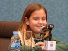 Julia Cabeza de Vaca mostró su lado más tímido aunque llegó a articular un feliz Carnaval para todos y desear a sus nuevas compañeras que lo pasaran bien en el papel de ninfa. Fue precisamente ella la que se encargó de leer el sobre que contenía el nombre de su sucesora que al oír que había sido proclamada Sirena infantil 2015, apenas se encogió de hombros por la sorpresa y rió tímidamente hasta ocupar asiento en la mesa presidencial.