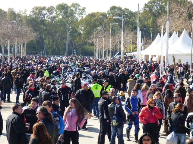 [Img #42288]Rota ha vivido un buen fin de semana motero gracias a la cita anual que organiza el Motoclub Roteño "Los Camaleones", encargado desde hace 31 años de permitir que los aficionados al mundo de las dos ruedas disfruten de dos días de mucho ambiente. Esta edición ha vuelto a saldarse, como viene siendo tónica habitual en los últimos años, sin incidentes reseñables más allá de la lluvia que cayó la madrugada del viernes al sábado, cuando el motoclub preparaba todo para abrir inscripciones a las once de la mañana, y se vieron sorprendidos por unas intensas precipitaciones que estropeó el equipo de sonido. Salvado este escollo, la Concentración Invernal "Villa de Rota" comenzaba con el tiempo a favor. Y es que pese a la ola de frío y nieve que azota a la Península, la localidad ha tenido la suerte de que las temperaturas fueran más o menos soportables y por tanto, que muchos aficionados, con moto y sin ella, acudieran al recinto ferial a disfrutar de este evento multitudinario.