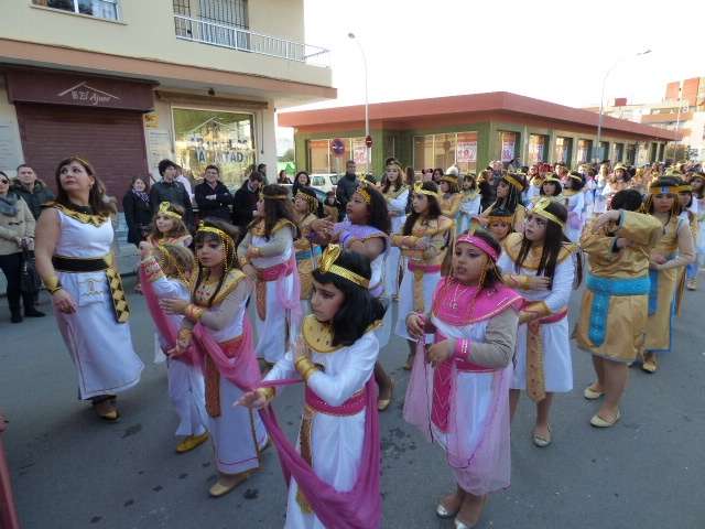 Esta "cabalgata" no hay por donde cojerla. Las carrozas ,la mayoría sin ninguna decoración ni exorno, carritos de la compra con cartones pintarrajeados en los laterales da una imagen un poco cutre. Los disfraces, la gran mayoría , de tienda de todo a euro, Numerosos adultos haciendo botellón ambulante rodeados de numerosos niños . Mejor hacer un pasacalles para que los niños se disfracen y solo ellos se diviertan. Es que nadie ha visto las cabalgata de otras poblaciones? Gran mamarrachada.