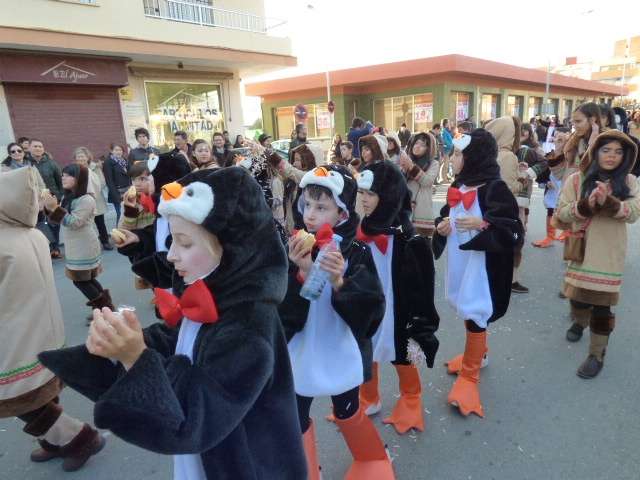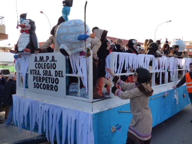 Tras una jornada de sábado intensa sobre todo, a partir de la caída de la tarde y que se prolongó hasta altas horas de la madrugada, muchos de los carnavaleros, como el caso de las agrupaciones, se han puesto el disfraz hoy por última vez; otros, como padres, madres y alumnos de diferentes colegios de la localdiad, lo han estrenado para dar color a una cabalgata que ha vuelto a estar más que animada en parte, gracias a la labor que hacen las AMPAS con sus trabajados disfraces, coreografías y alta participación. Son un año más, los que suman bastante protagonismo en esta cita ineludible para despedir la fiesta de Don Carnal.