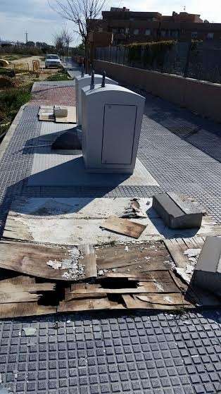 Junto a esta queja, también en el SUNP R2 los vecinos aguantan los desperfectos en la parte en la que se ubican los contenedores de basura soterrada donde, según el PSOE y tal y como muestran las fotografías, hay huecos tapados simplemente con algunas tablas de madera que incluso están rotas, con el consiguiente peligro que supone para los peatones.