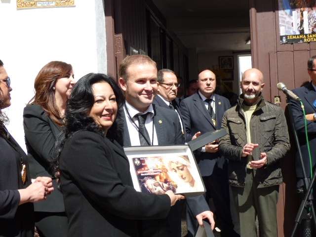 En el acto estuvo presente la alcaldesa de Rota, Eva Corrales, que agradeció la invitación de la hermandad al acto y reconoció que aunque es una sede pequeña, tiene una cosa grande que son las personas que componen esta cofradía en la localidad. La regidora destacó los actos solidarios que se llevan a cabo desde el Santo Entierro y la confianza plena en que esta hermandad está compuesta por buenas personas, al igual que hay en otras hermandades locales, "personas de fe que trabajan por sus vecinos", decía la alcaldesa felicitando al autor del azulejo y animando al Santo Entierro a seguir con su labor.