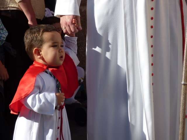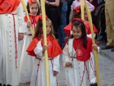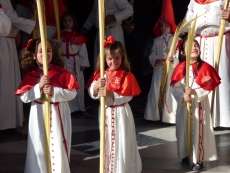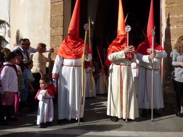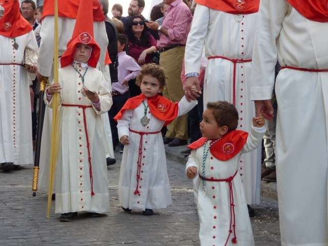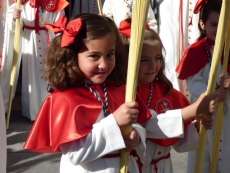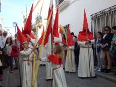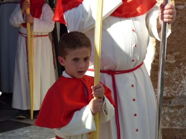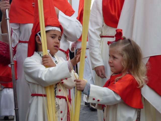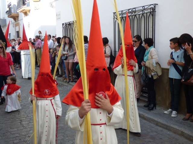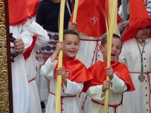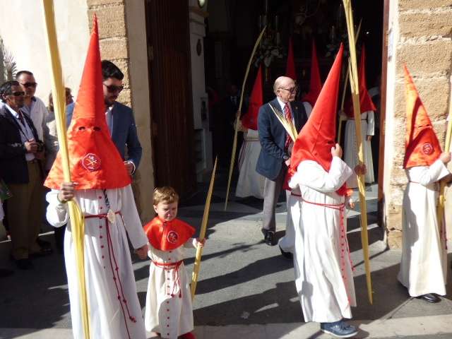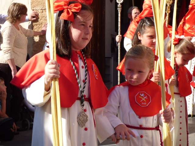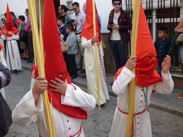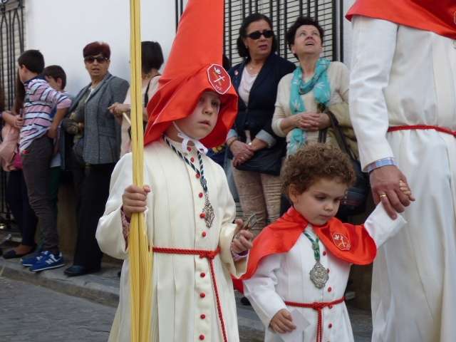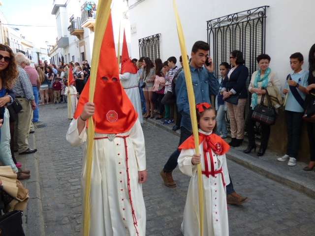 Los pequeños suelen llamar bastante la atención, algunos con palmas, otros con varas, y los menores, incluso cogidos de la mano de un adulto. Es la típica imagen del Domingo de Ramos cuya protagonista es la salida de La Borriquita, titular de la Hermandad de la Veracruz, considerada el semillero cofrade de la localidad dada las edades no sólo de una amplia mayoría de hermanos nazarenos, sino de los propios costaleros e incluso de capataz, Manuel Jesús Pizones y su grupo de contraguías.