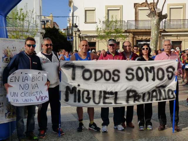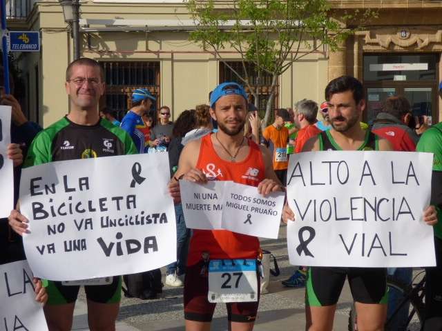 La salida, que en esta 30 edición ha tenido lugar en Rota, se ha efectuado pasadas las diez de la mañana tras varias muestras de recuerdo a la memoria del ciclista roteño Miguel Ángel Pruaño que fue atropellado el pasado 21 de marzo en la carretera cuando practicaba su deporte favorito. Amigos y aficionados deportistas han querido tenerlo hoy presente en esta competición con pancartas en su honor en las que además se ha pedido mayor concienciación a los conductores cuando ven a ciclistas en carretera. Ha habido momentos emotivos para ese roteño que perdió la vida con sólo 34 años cuando iba subido en su bici y fue atropellado por un conductor que se dio a la fuga. El deporte local no olvida a uno de los suyos y hoy, lo ha demostrado.