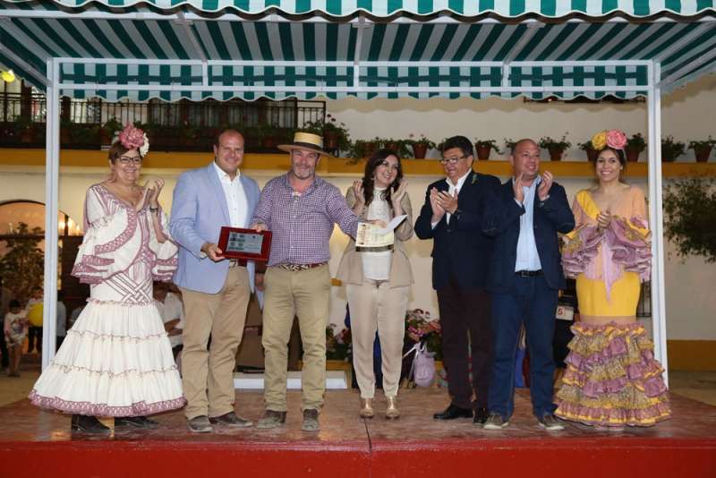 La alcaldesa de Rota, Eva Corrales, acompañada por su socio de gobierno y primer teniente de alcalde, Lorenzo Sánchez, junto con miembros del gobierno municipal entre los que se encontraban el teniente de alcalde delegado de Fiestas, Óscar Curtido, y el delegado municipal Antonio Izquierdo, entregaron las placas y premios otorgados por el jurado de este popular concurso de feria, compuesto por presidentes o representantes de las propias peñas de la feria.