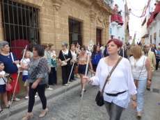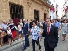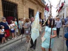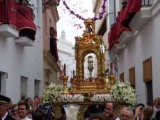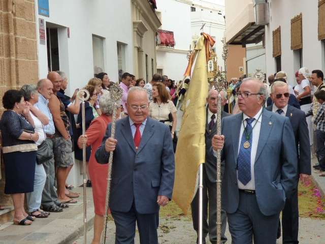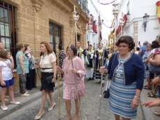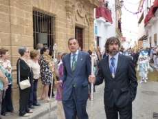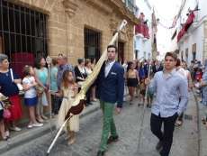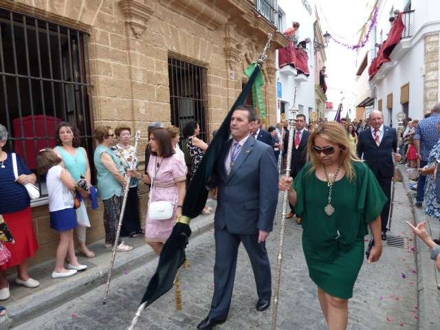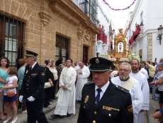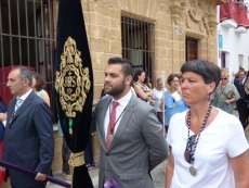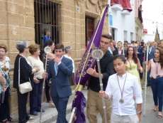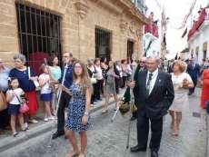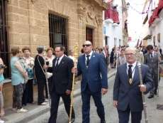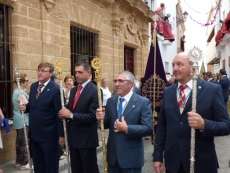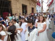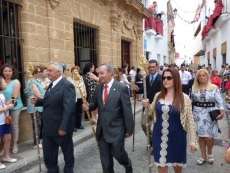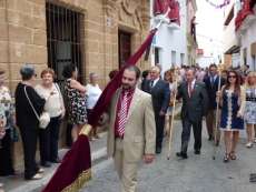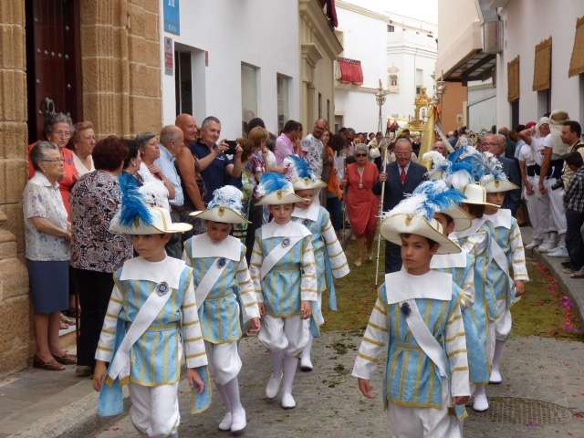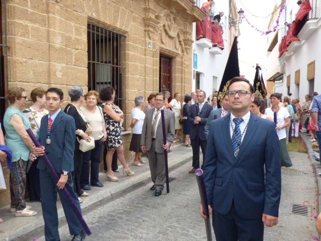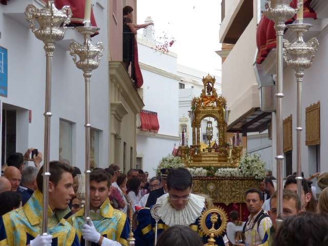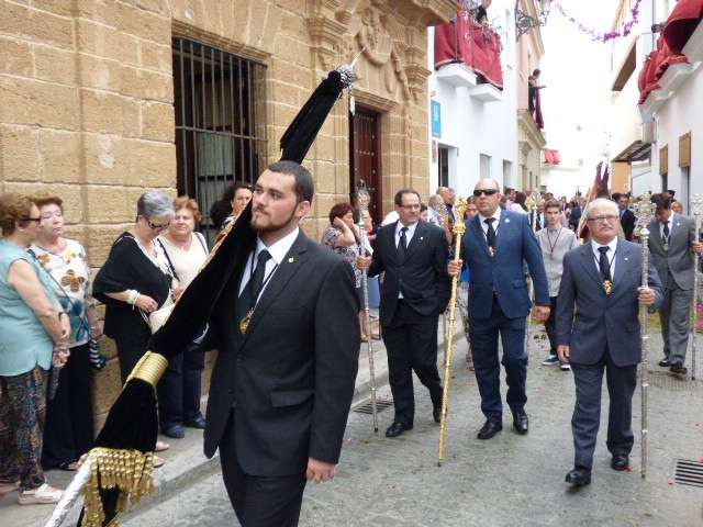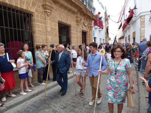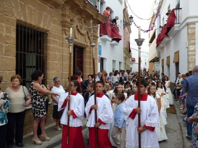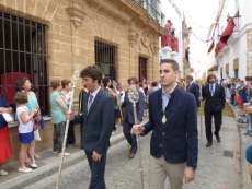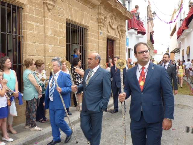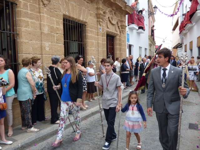 Abriendo paso iba en torno a medio centenar de niños que este año han recibido el sacramento de la Primera Comunión. Aunque algo revoltosos, daban el punto de color a la comitiva que seguía con representantes de asociaciones parroquiales y una representación de cada una de las cofradías roteñas que lucían estandarte y contaba con la presencia del hermano mayor de cada una junto a miembros de la junta de gobierno. Todos precedían el paso de la Santa Custodia que ayer estaba cargado por una cuadrilla de 20 jóvenes costaleros. Roteños que por primera vez después de décadas, llevaban sobre sus hombros el paso del Corpus que hasta ahora, siempre procesionaba sobre ruedas. De esta manera, la Hermandad Sacramental ha querido impregnarle un mayor realce a una procesión que tiene un significado especial para todos los cristianos cofrades y que ayer tenía una buena acogida.