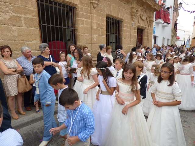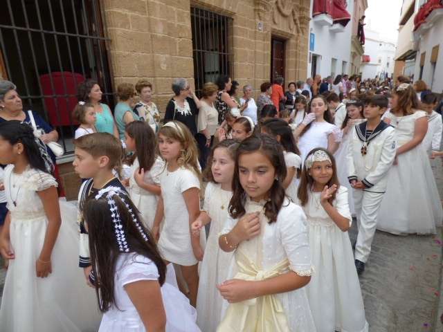 Pese al viento y el cielo nublado, la salida del Corpus Christi lució ayer domingo por la tarde por las calles de la localidad, muchas de ellas engalanadas para la ocasión, ya que se trata de una fiesta importante para los cristianos que conmemoran la presencia del Cuerpo y la Sangre de Cristo entre ellos. Es la fiesta de la eucaristía y por eso, ayer, los representantes de todas las hermandades de penitencia y gloria de la villa, acudieron a esta llamada que suele coincidir con el primer domingo del mes de junio.