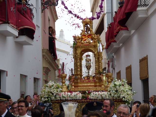 A lo largo del recorrido, la Santa Custodia recibió varias petaladas y fue pasando por calles que se engalanaron para la ocasión con telas de damasco colgando de los balcones como la calle Castelar, una de las más volcadas con esta tradición donde los vecinos pusieron su granito de arena, así como otras en las que el Ayuntamiento de Rota contribuyó con columnas y diferentes ornamentos. Las capillas de San Roque, la Caridad y la Casa Hermandad del Nazareno también montaron sus altares, abiertos desde por la tarde, para contribuir al engrandecimiento de esta salida procesional con las imágenes de la Inmaculada Concepción, San Fernando y Santa Teresa respectivamente.