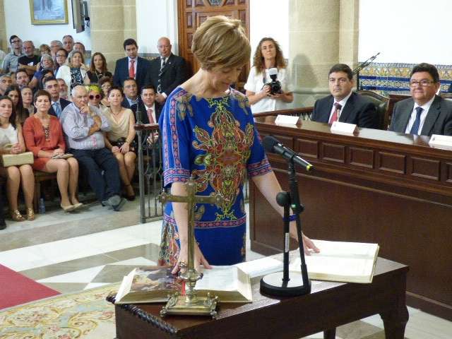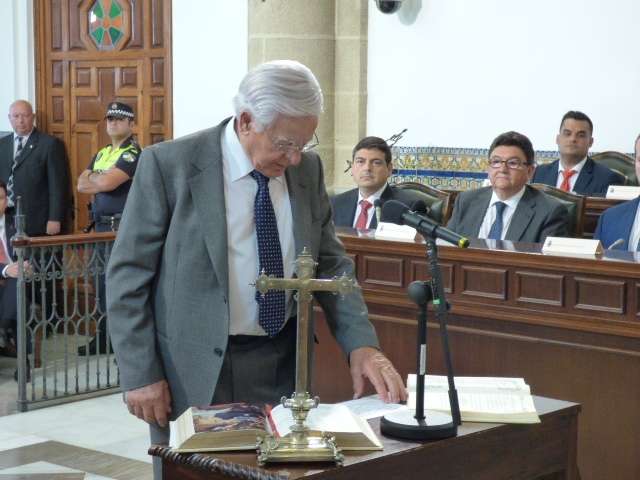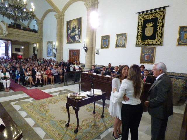 El salón capitular del Palacio Municipal Castillo de Luna ha estado lleno de ciudadanos que han arropado a esta nueva Corporación en quien han confiado para el mejor desarrollo de la localidad; un grupo de roteños que hoy han jurado o prometido su cargo ante la Constitución para hacer valer los derechos de la Carta Magna durante su mandato. Cada uno de los 21 concejales, en orden de menor a mayor número de votos obtenidos en las urnas, ha cumplido con el protocolo de este tipo de actos donde los dos componentes de la mesa de edad compuesta por el concejal más adulto y el más joven, en este caso, Francisco Laynez y Laura Luna, respectivamente, han ido imponiendo las medallas que los acredita como miembros de la Corporación local.