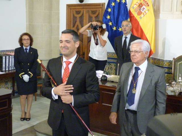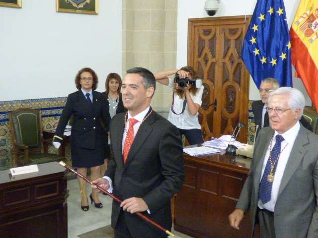 Desde hoy a las 13.15 horas, momento en el que ha tomado el bastón de mando de manos del concejal de mayor edad de la nueva Corporación municipal que hoy echa a andar, el socialista José Javier Ruiz es el nuevo alcalde de Rota. Con él comienza la décima legislatura democrática en el Ayuntamiento de la localidad y según sus palabras, también una "nueva era". Esos "aires de cambio" que proclamaba en los días previos a las elecciones municipales del 24 de mayo, han llegado al Consistorio roteño y lo hará de mano del grupo municipal del PSOE que con 10 concejales, unidos a los 2 que aportará Izquierda Unida tras el pacto firmado ayer viernes, formarán el nuevo gobierno municipal de izquierdas. En la oposición se quedarán PP (4 concejales), Roteños Unidos (4 concejales) y Sí se Puede Rota (1 concejal).