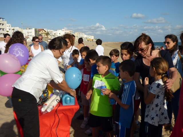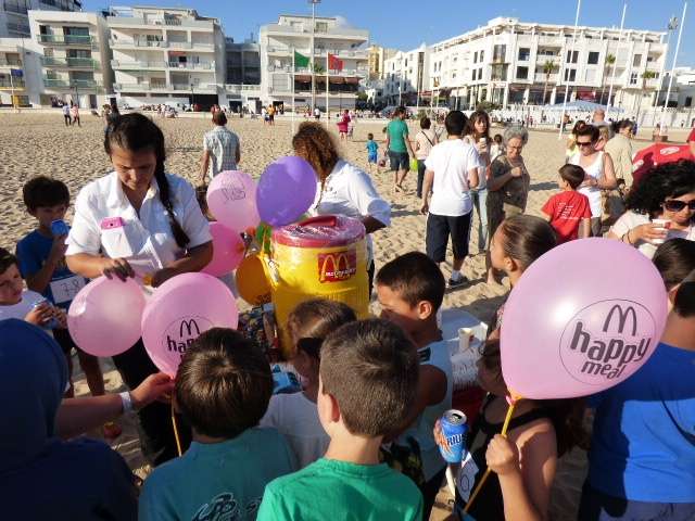 Como ya han hecho en otras ocasiones, en su ánimo de colaborar con competiciones deportivas locales, principalmente, si hay niños de por medio, McDonald's Rota trasladó hasta la playa, junto al arco de meta, a dos de sus azafatas que estuvieron repartiendo globos y zumos de naranja natural para que los pequeños corredores recuperaran fuerzas tras el esfuerzo físico realizado.