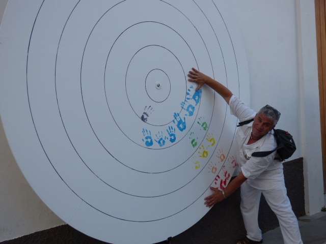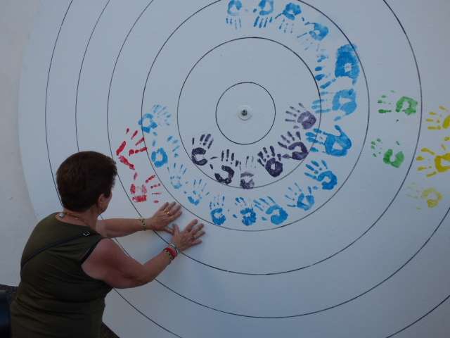 El acto concluía con la izada de la bandera gay en la plaza de España y con los talleres que corrían a cargo de la asociación cultural "La Casa Blanca" dirigido a niños. También los adultos pudieron participar en la confección de una bandera representativa del movimiento gay dentro de un mándala gigante con pintura de manos. Por él, pasaron el propio alcalde, concejales del gobierno, miembros de partidos políticos sin representación municipal y ciudadanos en general que casi completaron el mándala.