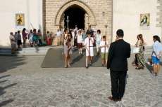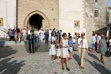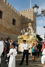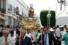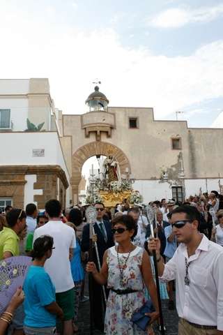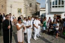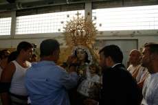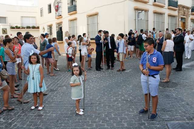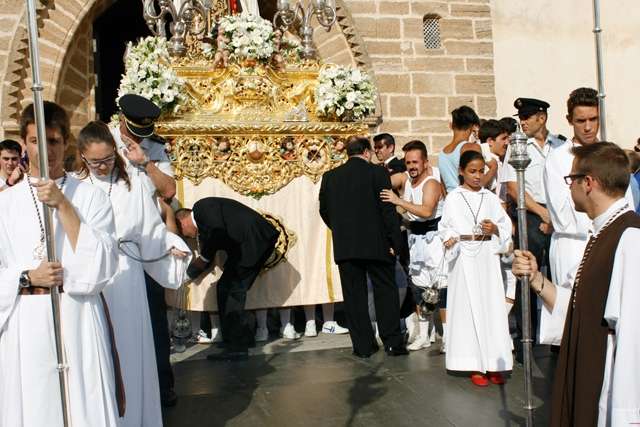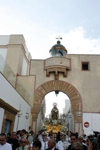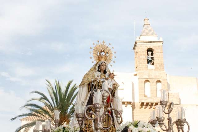 Unos minutos después de las siete de la tarde hacia aparición por la puerta de la parroquia de Nuestra Señora de la O la patrona de los marineros, tras la celebración de la habitual eucaristía en su honor, precedida de su cortejo formado por representantes de la Hermandad de Nuestra Señora del Carmen, y de otras hermandades, de miembros de la Marina Española, además de numerosos devotos que quisieron acompañar a la virgen.