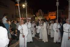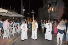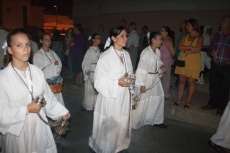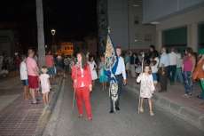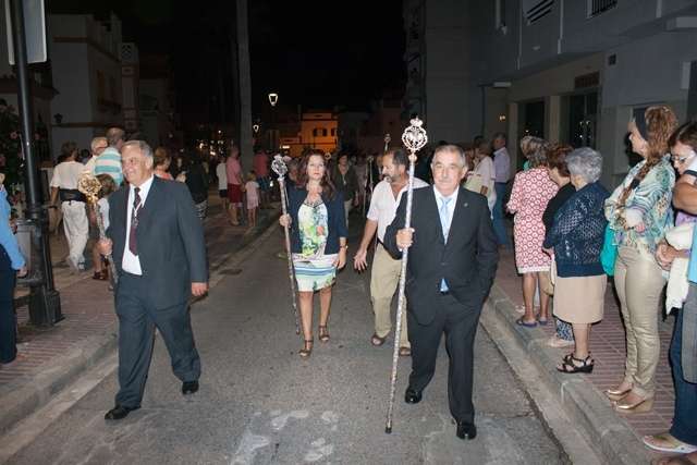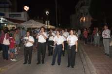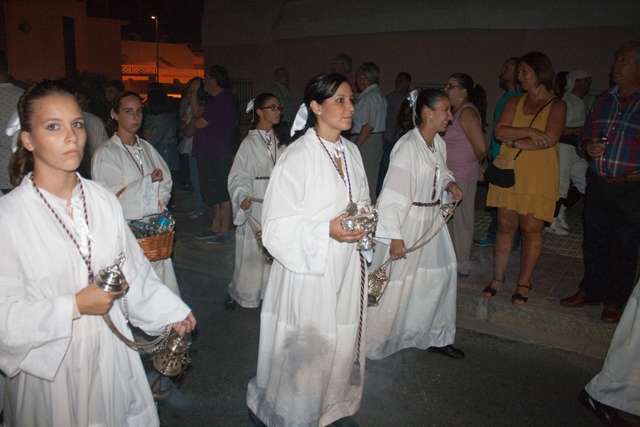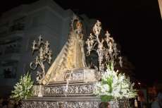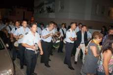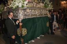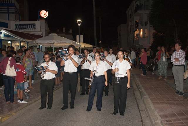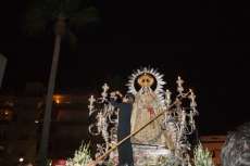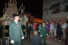 Una hora más tarde aproximadamente, la Patrona iniciaba su definitivo traslado hasta la parroquia de la O, está vez sobre su paso procesional (a la ida fue en parihuelas) y con el acompañamiento musical de la banda municipal de música Maestro Enrique Galán.
