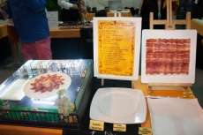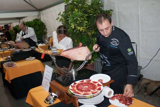 Todo el jamón cortado era puesto al momento a la venta a precios populares, además de quesos y chacinas suministrados por las empresas organizadoras.