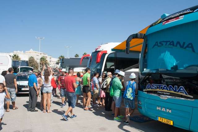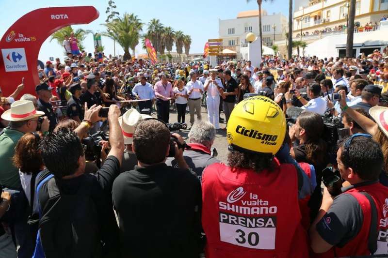 Sobre las doce del mediodía, una hora antes de la salida, fueron llegando los autobuses de los equipos ciclistas, con los deportistas en su interior y sus bicicletas, momento que aprovecharon muchos aficionados para intentar capturar una imagen de sus ídolos. También sobre esa hora fueron llegando a la zona vip las diferentes autoridades políticas locales y provinciales, que fueron recibidas por el director de la Vuelta, Javier Guillén. Entre estas autoridades han estado la presidenta de la Diputación Provincial de Cádiz, Irene García, el delegado del Gobierno en Andalucía, Antonio Sanz, el alcalde de Rota, Javier Ruiz Arana, el almirante de la Flota, Francisco Javier Franco, el director gerente de la Agencia Pública de Puertos de Andalucía (APPA), Alfonso Rodríguez Gómez de Celis. y numerosos diputados provinciales y concejales roteños.