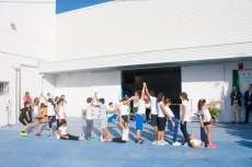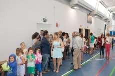 Finalmente, tras una actuación de los alumnos de sexto curso, que elaboraron el nombre del colegio con sus cuerpos, el acto concluiría con el tradicional corte de la cinta por parte de Javier Ruiz, Irene García y Manuel Bueno, tras lo cual todos los allí presentes pudieron conocer y recorrer el nuevo pabellón.