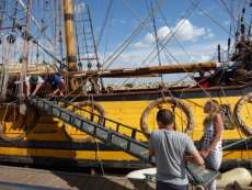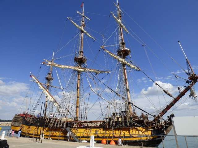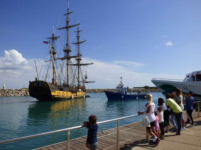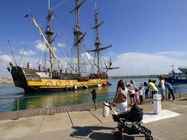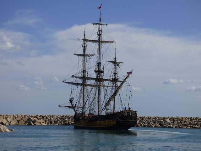 El barco, que sólo unos cuantos ciudadanos han podido ver, está haciendo escala por varios puertos deportivos de la zona en su ruta. Entre ellos, ha estado Rota, donde se ha podido ver esta fragata de 34,5 metros de eslora, 6,9 metros de manga, 33 metros de altura del palo mayor, y una superficie vélica total de 620 metros cuadrados.