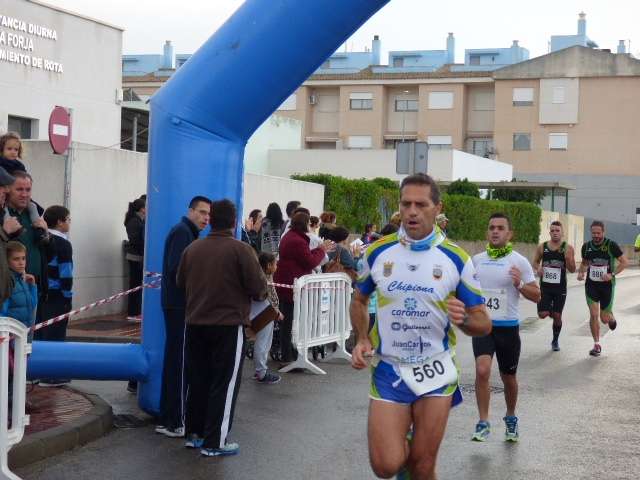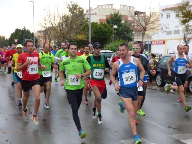 La lluvia de anoche y la pasada madrugada han dejado paso, sin embargo, a medida que avanzaba la mañana a que el cielo se despejara y el ambiente frío del principio estuviera más ambientado sobre todo porque ha sido en torno a las once y media cuando los pequeños se han convertido en protagonistas de las carreras, algo que siempre anima a los padres a salir. Antes de las categorías de pañal y pitufos que son sin duda, los que dejan las mejores estampas, han sido desde los veteranos a cadetes los que han partido de la línea de salida. Lo han hecho a las diez y media un total de 115 corredores que han recorrido un circuito de 5 kilómetros en total. Poco público había a esa hora para animarlos, aunque poco a poco se fue animando las inmediaciones del arco de meta y desde allí se ha aplaudido a los participantes que iban completando la distancia. El primero en hacerlo ha sido el roteño José Miguel Alonso, del Club Atletismo Chapín, con un tiempo de 18 minutos 23 segundos, seguido de Daniel Murga del Club Atletismo Chipiona, de Salvador Pruaño en tercer lugar, del Bike RM y el cuarto Samuel Morales como independiente.