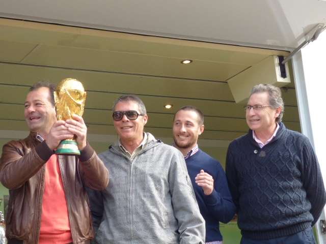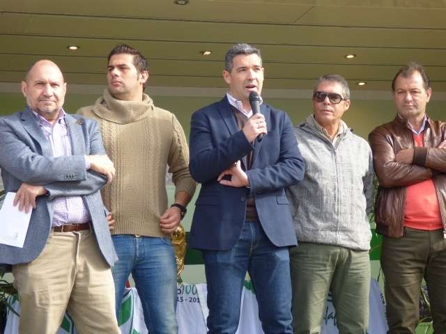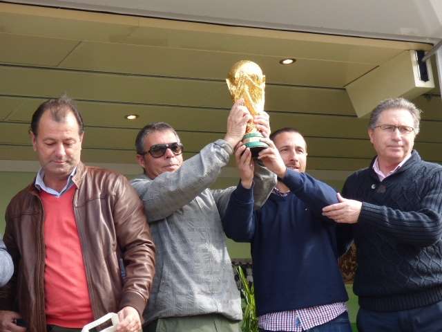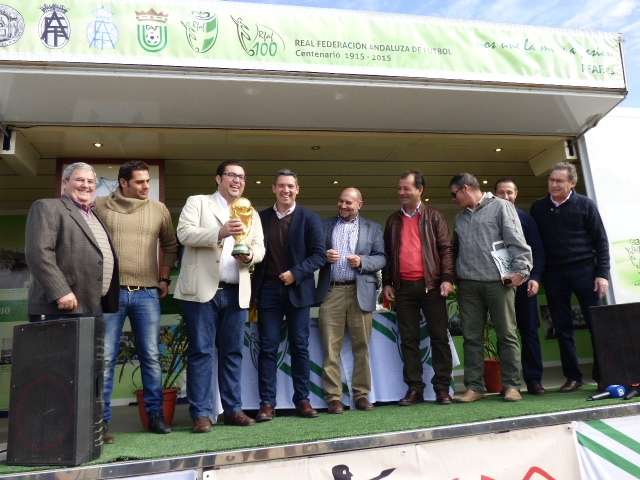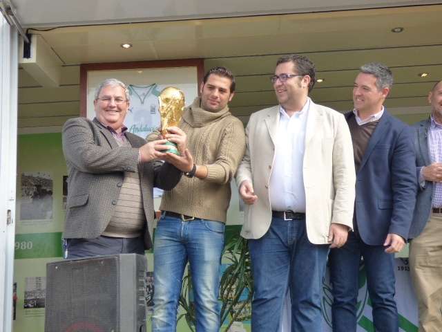 El alcalde de Rota, Javier Ruiz, junto al delegado de Deportes, José Antonio Medina, el delegado de Participación Ciudadana, Antonio Franco, el diputado provincial de Deportes, Jaime Armario, el director de la EFI MEVA, Enrique Medina, y los presidentes del C.D. Rota y la U.D. Roteña, Alberto Izquierdo y José Luis Poley, respectivamente, ha participado en el acto de recepción oficial del "Futbol Tour" teniendo la oportunidad de coger entre sus manos la Copa del Mundo de 2010 y las Eurocopas de 2008 y 2012. En las intervenciones, todos han agradecido a la Diputación de Cádiz su apuesta por que la provincia contara con esta exposición itinerante que ayer estuvo en Arcos y que mañana parte hacia Asturias. También felicitaciones a la Federación Andaluza de Fútbol por su centenario y por esta idea que ha acercado a los aficionados al fútbol una oportunidad única. Además, se ha puesto en valor la labor de la federación y su apuesta por el deporte base, donde los clubes pequeños y locales como los que estaban representados en el acto de hoy, han tenido su hueco por ser ellos los que transmiten los verdaderos valores deportivos a los más pequeños.