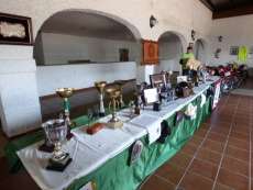 Para los aficionados que se están reuniendo en torno al recinto ferial, hay una exposición de motos clásicas que se puede visitar entre hoy y mañana. En torno a medio centenar de motos que tienen un siglo y que han sido cedidas por coleccionistas, uno de los principales, el sanluqueño Manuel Camacho que cuenta con una buena representación en esta muestra donde hay modelos desde 1914 que llaman la atención de muchas de las personas que están pasando por la caseta "Nueva Jarilla" donde está instalada. La idea, según uno de los socios organizadores, es hacer un repaso por la historia de este vehículo de dos ruedas que levanta pasiones y que el motoclub complementa con ropas, como camisetas, camisas, sudaderas, polos, gorras, etc., de estos 32 años de historia de la entidad que también muestra un buen número de trofeos y galardones ganados por ellos cuando han acudido a otras concentraciones.