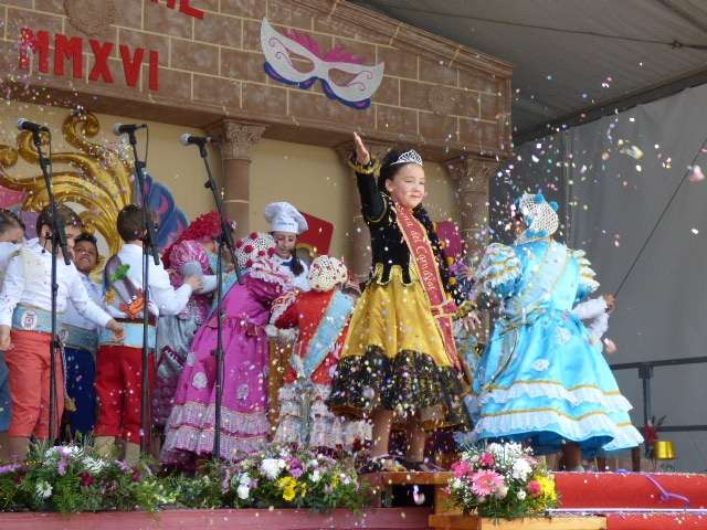 Como recuerdo de este día, la delegada de Fiestas le ha hecho entrega de un cuadro con su nombramiento como segunda pregonera del Carnaval Infantil. Posteriormente, la murga de la Asociación de Discapacitados, y las chirigotas "A estas alturas con mi madre hasta la sepultura" y "Este año salimos a dos velas", se han subido al escenario para actuar y divertir al público de la plaza de España que en estos carnavales está siendo el centro de los principales actos oficiales.