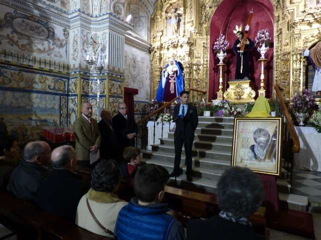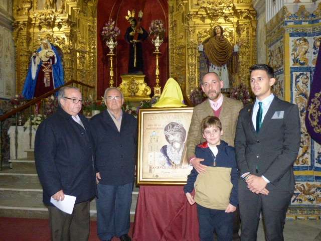 Fue en la capilla del Nazareno, tras la misa de las siete y media, y con un nutrido número de cofrades, donde se descubrió el cartel realizado por el joven Jonathan Alonso, en el que dibujado a bolígrafo, una técnica que domina a la perfección, y con acuarelas, recoge un primer plano de la cara del Señor de Rota, donde también aparece la Torre de la Merced, como monumento emblemático y arraigado a la historia de la propia Hermandad del Nazareno, ya que fue allí donde se fundó, además del corazón de rogativas como muestra de la devoción que la villa le profesa a Jesús.