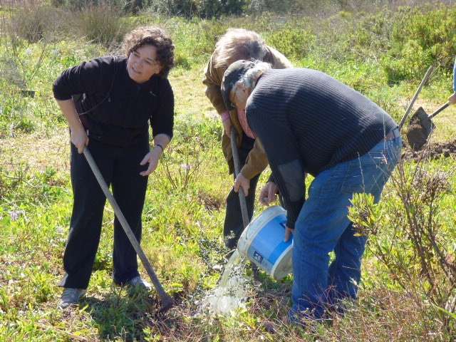 Hoy, con la ayuda de miembros de los dos colectivos organizadores, los casi 20 ciudadanos que han participado en esta reforestación han puesto de su parte para llevar a cabo las plantaciones, una actividad a la que luego ha seguido una convivencia.