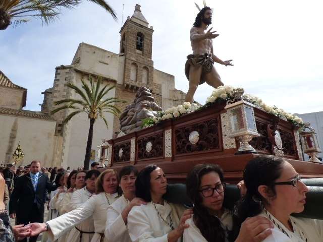 La Hermandad del Amor se reunía unos 45 minutos antes de la hora de salida, este año prevista media hora después de lo que venía haciéndolo habitualmente, y con los partes meteorológicos en la mano, decidían iniciar su salida procesional a las once de la mañana. A esa hora, en las inmediaciones de la parroquia del Carmen se congregaban algunos ciudadanos para ver a este Jesús en actitud caminante, que representa el triunfo de la vida sobre la muerte y al fin y al cabo, lo que da sentido a la fe católica. Sin embargo, ha sido por el casco histórico por donde el Resucitado ha estado más arropado, con multitud de roteños y turistas que aprovechando las buenas temperaturas que abrían el día, se han echado a la calle.