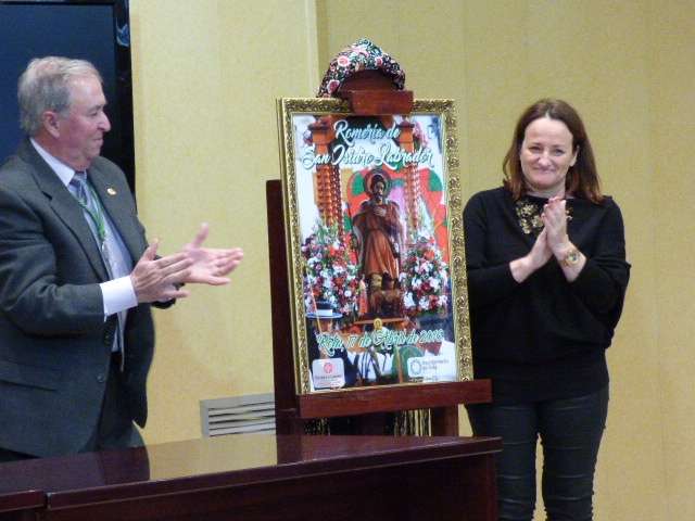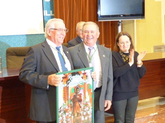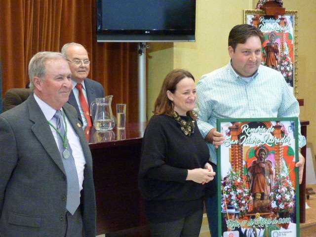Antes, la teniente de alcalde y el hermano mayor de la hermandad, Antonio Beltrán, han descubierto el cartel que anuncia la romería 2016, una foto del santo, obra de Miguel Ángel Benítez, que junto a miembros del Consejo Local de Hermandades y Cofradías, del Ayuntamiento y de la empresa patrocinadora del cartel, han recibido la imagen enmarcada.