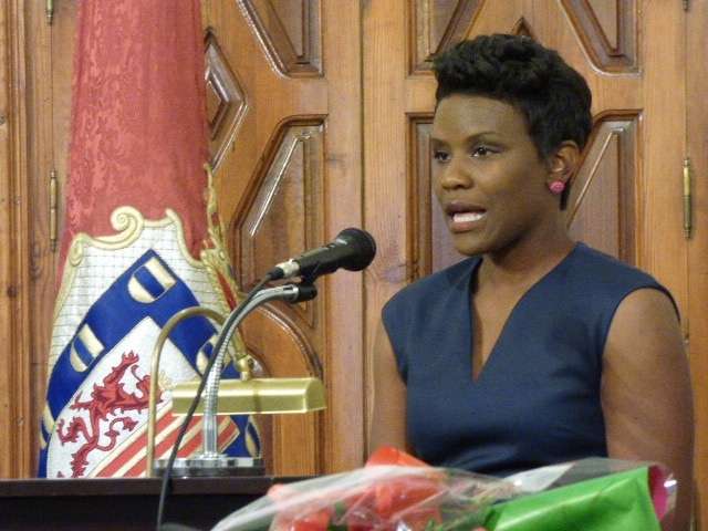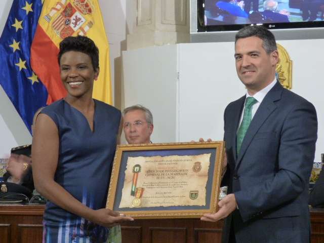 [Img #56093]Posteriormente, fue el Servicio de Investigación Criminal de la Base (NCIS) el que recogió su medalla y pergamino por la colaboración continua con el Cuerpo Nacional de la Policía durante todos estos años. Fue Daniela James, representante del NCIS la que agradeció en un breve discurso en español el reconocimiento que se hacía a este grupo mostrando su gratitud por el detalle de ASACRO.