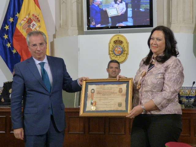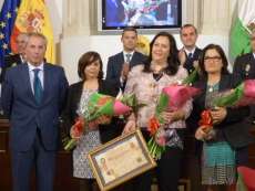A continuación, a Asociación de Víctimas del Terrorismo (AVT), representada por su presidenta andaluza, Maite Araluce, recibía la medalla de oro y pergamino por ser una entidad que lucha por "la memoria, historia, dignidad y justicia" para las personas que han sido víctimas de ataques terroristas. Un gesto que la AVT agradeció porque para los que componen la entidad, sirve de acicate para seguir luchando por la justicia que entienden que debe haber con las víctimas. Maite Araluce recordó que llevan 33 años trabajando "por la verdad", por ser visibles en la sociedad y por los derechos de las víctimas, por ello, agradeció este reconocimiento que es para los más de 5.000 asociados con los que cuentan. Aprovechando este reconocimiento, se tuvo un detalle además con dos mujeres que han perdido a un familiar director en ataques terroristas, Mercedes Román Moreno y María Dolores Acuña Bravo. El público asistente se puso en pie para dedicarles un sentido aplauso.
