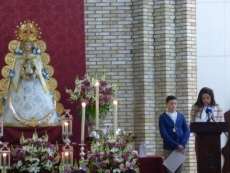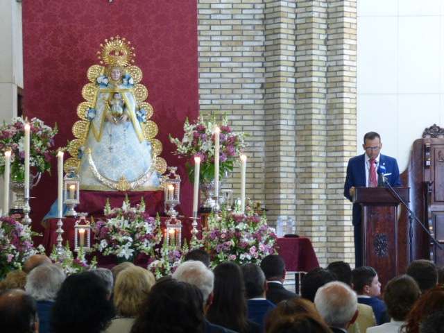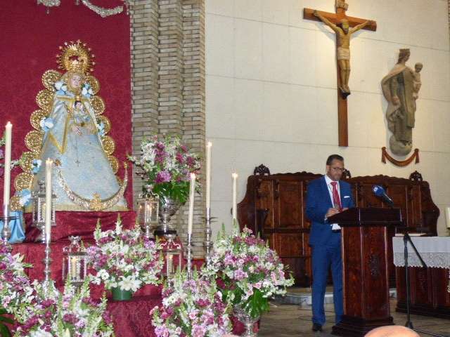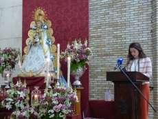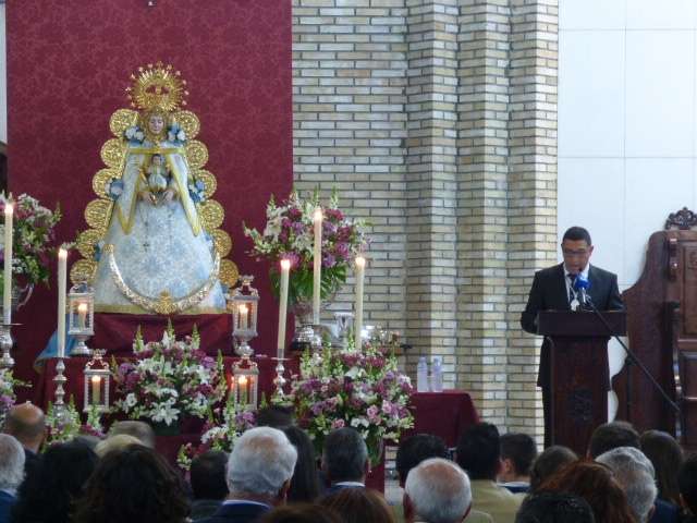 Con algo de miedo pero apoyado en Ella, comenzó a desgranar un texto en el que no faltaron alusiones a la historia de la hermandad roteña, a sus inicios y a la devoción del pueblo de Rota a la Virgen del Rocío incluso cuando esta dejó de peregrinar en 1808 perdiendo con ello la antigüedad que tenía desde antes de 1758 hasta la reorganización en 1978 cuando comienza a peregrinar de nuevo ya sin interrupción hasta nuestros días.