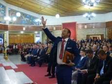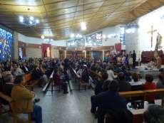 Luis Alfonso Espinar estuvo arropado por los suyos desde el principio y nadie mejor que sus hijos, como adelantó el presentador del acto, Manuel Laynez de los Santos, podían darle la palabra. Su hija Mónica María y su hijo Luis Antonio destacaron los valores cofrades de su padre que comparte a partes iguales entre la virgen del Rocío y el Nazareno. Su vida ha estado siempre ligada a la hermandad rociera y es de hecho en una peregrinación donde conoce a la que hoy es su esposa. También ante la virgen supo que iba a ser padre y ante ella se ha postrado muchas veces para pedir por los suyos. Su primogénita alabó al pregonero, un rociero de pro del que dijo sentirse orgullosa y al que debe muchas de las experiencias que hoy ya forman parte de su memoria. En un par de ocasiones se emocionó, al igual que su hermano que tras leer el poema escrito por un buen amigo de su padre, no pudo contener las lágrimas. Fundidos en un abrazo con su mujer y sus dos hijos, subía repuesto un pregonero que mostró ímpetu antes de tomar la palabra dirigiéndose a la Blanca Paloma que ayer presidía el altar de la parroquia del Carmen.