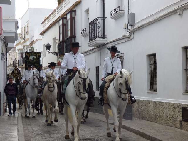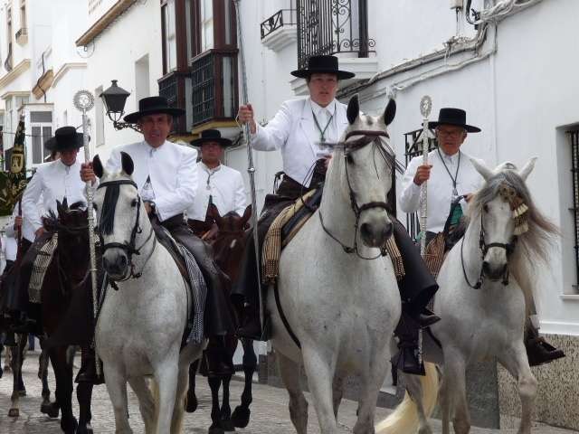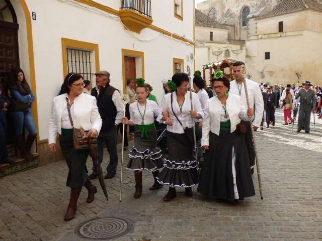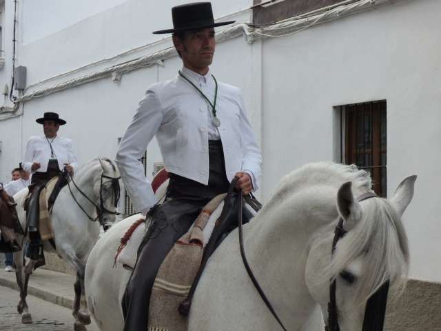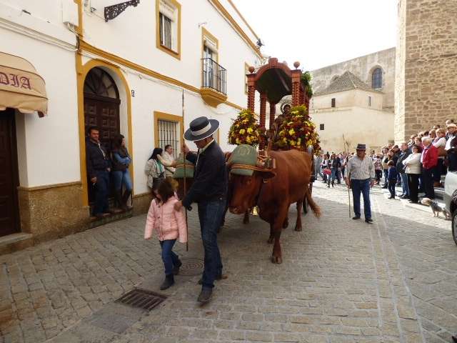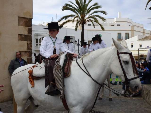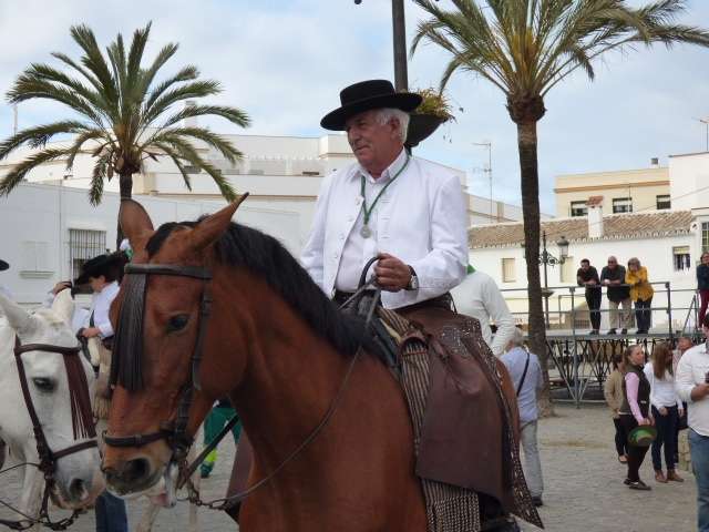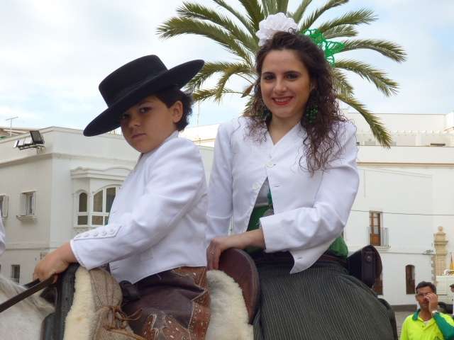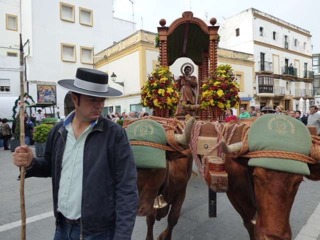 Aunque ayer había algunos partes meteorológicos que amenazaban con lluvia, la realidad es que la Hermandad de San Isidro no ha tenido problemas para realizar su peregrinación hasta los pinos, es más, le está acompañando unas buenas temperaturas y un cielo despejado, al menos en la primera parte de lo que va de día. Eso ha propiciado que muchos roteños se hayan animado a pasarse por los pinos para acompañar al patrón de los agricultores que en su carreta, recorría varias calles y avenidas de la localidad en un cortejo formado por caballistas, jinetes y amazonas, un buen grupo de hermanos de todas las edades luciendo el típico traje de la hermandad, representantes de la junta de gobierno, la pregonera de este año Soraya Castellano, miembros de la Hermandad de Nuestra Señora del Pinar de Regla de Chipiona que es fiel a esta cita, el pitero Antonio Vázquez, y unas cinco carrozas de peñas de amigos que han dado ambiente a la comitiva que bien pasadas las once y media de la mañana, llegaba a los pinares. Una vez allí, en la zona frente al recinto ferial, San Isidro en su carreta ha presidido la tradicional Misa de Romeros. Una eucaristía que ha comenzado a las doce del mediodía, con bastante retraso según el programa oficial, provocado en parte por la tardanza también de la salida que se ha retrasado una hora esperando a las vacas que tiran de la carreta de San Isidro.