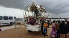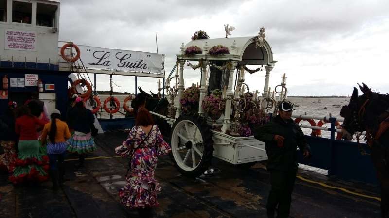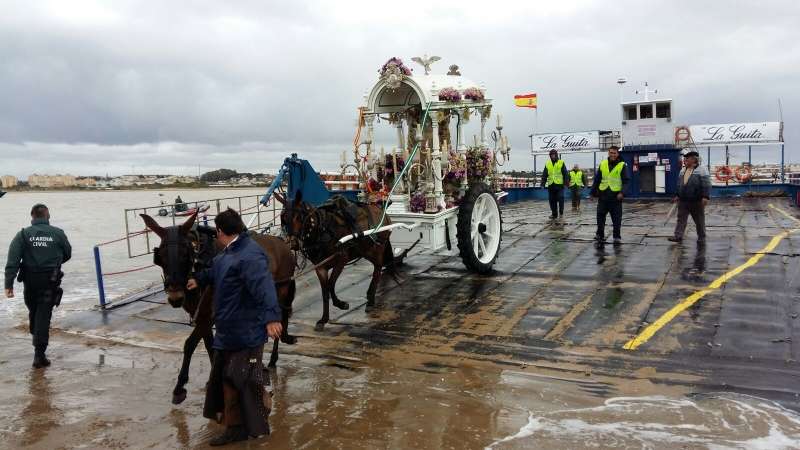 Los rocieros roteños han completado la primera jornada de camino hacia el Rocío sin incidencias destacables más allá de la copiosa lluvia que ayer les acompañó desde que salieron de Rota hasta llegar a Sanlúcar donde embarcaron sobre las tres de la tarde. Dado que no hicieron la parada habitual en la zona del cementerio ni tampoco pararon para comer, la Hermandad de Nuestra Señora del Rocío llegaba prácticamente una hora antes de lo habitual a Bajo Guía para esperar un embarque que se hizo con llovizna, pero sin incidencias.