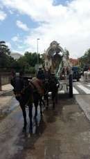 A ver si con un poco de suerte y con estas lluvias se estropea esta carreta que es una obra de arte barroca y la hermandad hace ya un buen proyecto de carreta de orfebreria personal como TODAS las que hay, que es una vergüenza que la hdad de Rota siendo del año que era, actualmente tenga una carreta de madera y de segunda mano...........