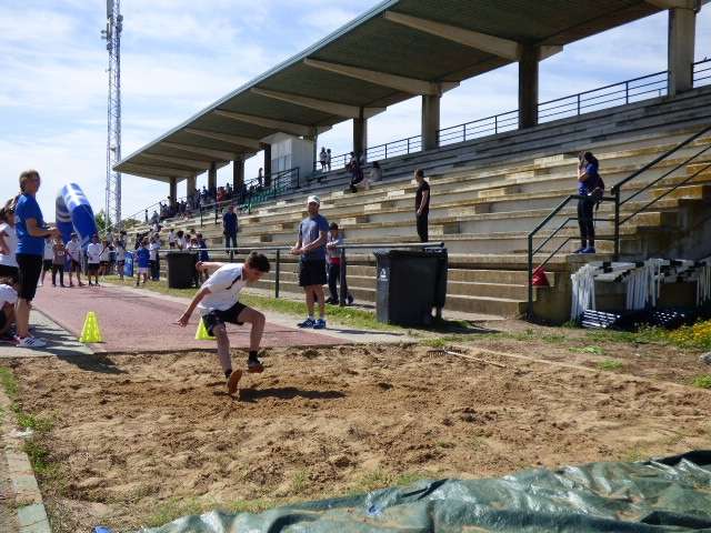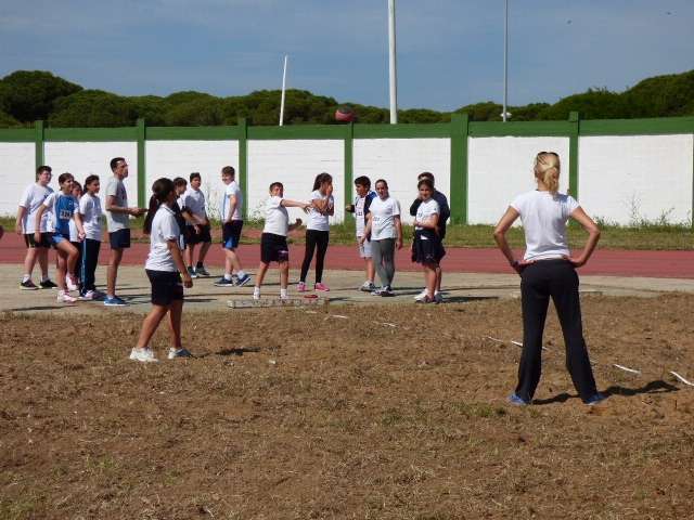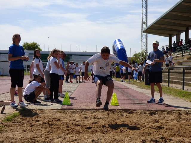 Hoy ha sido el turno de los estudiantes de Primaria que se han ido dividiendo entre pruebas de salto de longitud, lanzamiento de peso, carreras de relevo, carreras de varias distancias, bádminton, fútbol sala mixto, baloncesto, etc. La idea era propiciar un circuito de actividades deportivas adaptadas a todas las edades para fomentar la práctica del deporte y el estilo de vida sano.