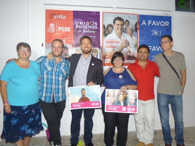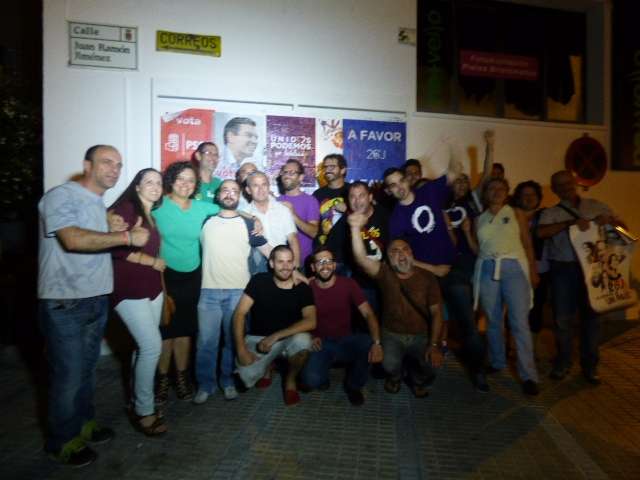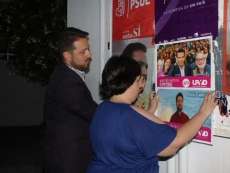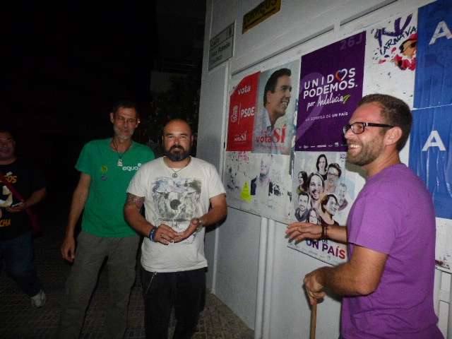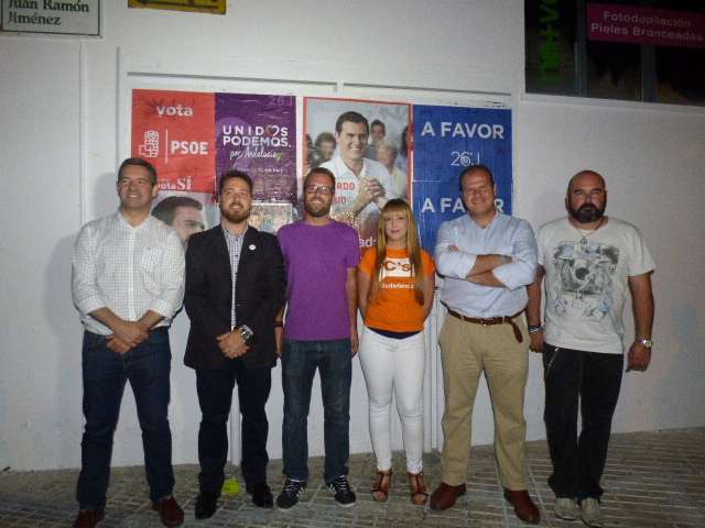 Ayer, en la calle Juan Ramón Jiménez, situada entre la avenida San Fernando y el Parque Victoria, se dieron cita miembros de los cinco partidos que concurren a estos comicios generales y que tienen representación en la localidad. Ambiente quizás algo menos tenso que en otras ocasiones. Por orden de número de votos conseguidos en las pasadas elecciones, los representantes de cada formación colocaron en el panel informativo situado en esta calle su cartel. Óscar Curtido lo hizo por el PP, Javier Ruiz Arana por el PSOE, Manuel Carmona,  Moisés Rodríguez y Mateo Quirós por Unidos Podemos, Eduardi Reyes por Ciudadanos, y Hugo Cañellas por UPyD.