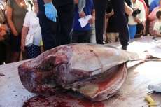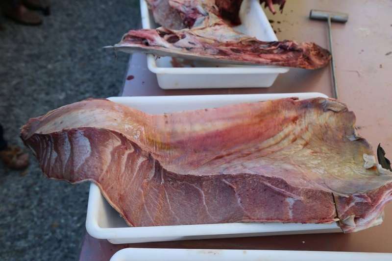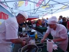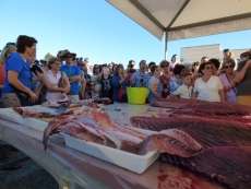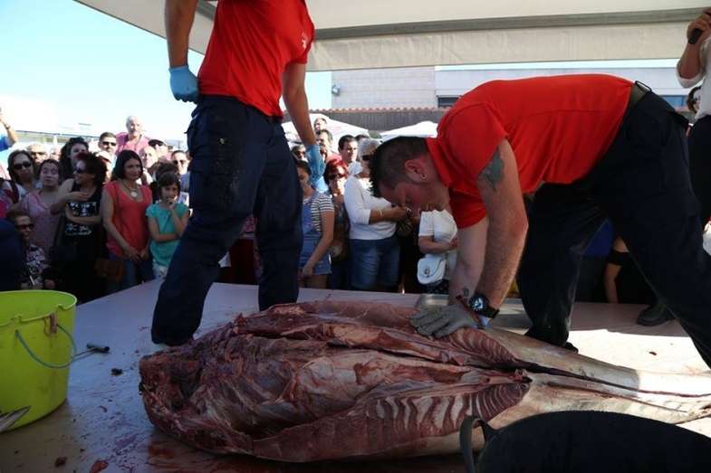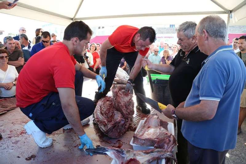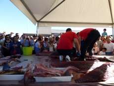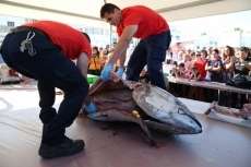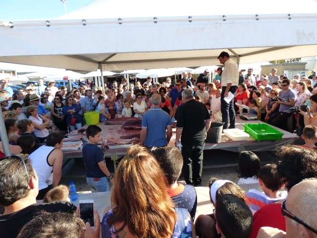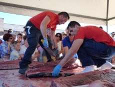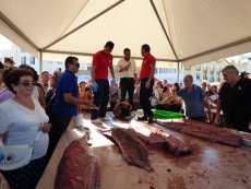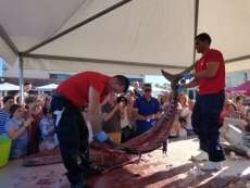 Buen ambiente en el primer ronqueo de un atún con posterior exhibición de cocina en directo