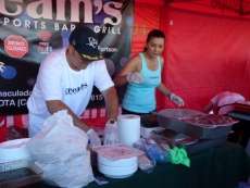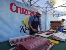 Buen ambiente hubo ayer por la tarde en el muelle pesquero de Rota hasta donde se acercaron numerosos roteños y turistas para disfrutar del primer ronqueo de un atún rojo que se celebraba en la localidad con posterior exhibición de cocina en directo de la pieza.